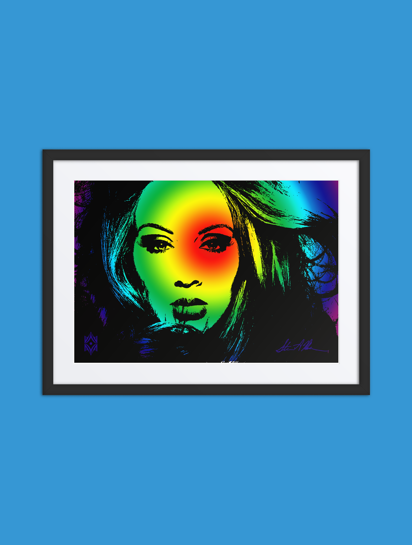 Vivid layers of color emerge through a unique pastel-resist process, blending bold pop-culture portraits with striking natural imagery.